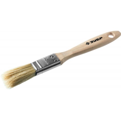 ЗУБР 20 мм, 3/4", щетина натуральная светлая, деревянная ручка, кисть плоская УНИВЕРСАЛ 01005-020 Эксперт