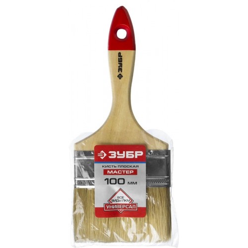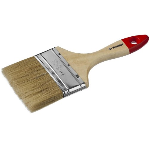 Кисть плоская малярная ЗУБР 4-01003-100, предназначена для работы с красками, эмалями, лаками на масляной основе и иными ЛКМ. Светлая натуральная щетина высокого качества. Повышенная износоустойчивость. Деревянная ручка с отверстием для подвески.