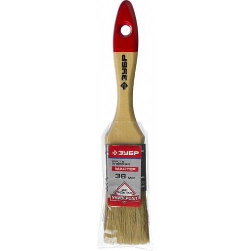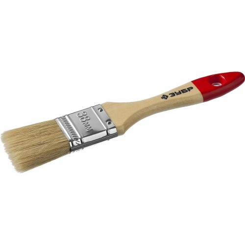 Кисть плоская малярная ЗУБР 4-01003-038, предназначена для работы с красками, эмалями, лаками на масляной основе и иными ЛКМ. Светлая натуральная щетина высокого качества. Повышенная износоустойчивость. Деревянная ручка с отверстием для подвески.