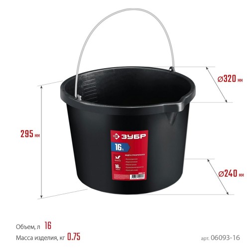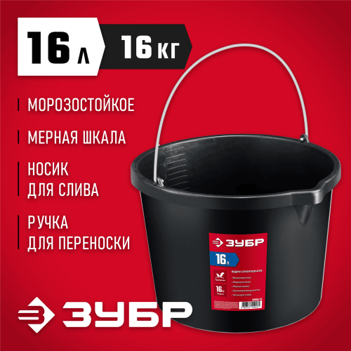 ЗУБР 16 л, ударопрочный пластик, с носиком, строительное ведро (06093-16)