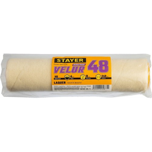 Ролик сменный STAYER 0232-25_z01, предназначен для наружных и внутренних работ. Велюр – помогает достичь идеально гладкой поверхности. Полностью, либо с добавлением синтетики, натуральный материал имеет однородную структуру, с ворсом небольшой длины, идеален для окрашивания гладких поверхностей, создает равномерный качественный слой.