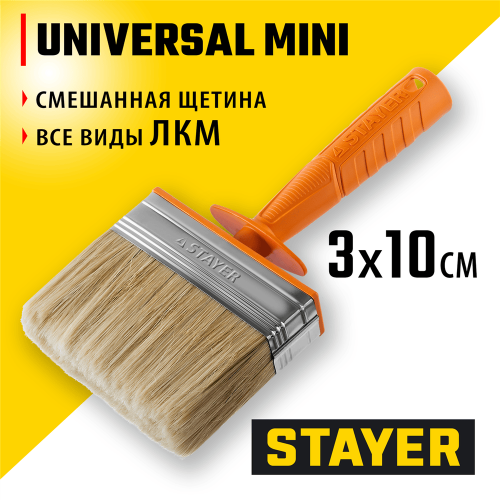 Отличное решение для работы со всеми типами ЛКМ, а так же грунтовки, побелки на большие поверхности, клеевых составов на обои, размывки потолков. Щетина кисти надежно закреплена бандажом из никелированной стали, а наличие удобной пластмассовой рукоятки обеспечит комфортную работу