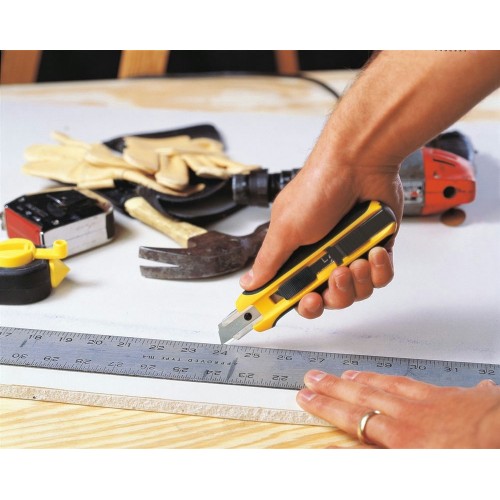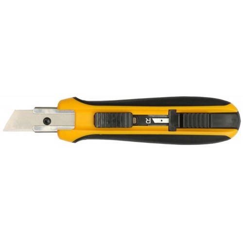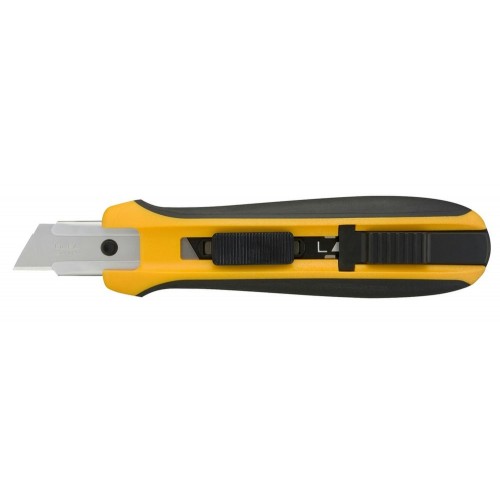 Нож канцелярский OLFA OL-UTC-1, предназначен для резки жестких материалов (для разрезания гипсокартонных плит, обоев, бумаги, кровельных материалов, изделий из резины и кожи и срезания монтажной пены). Рукоятка Comfort Grip с резиновыми вставками и упорами обеспечивает удобство работы инструментом. Усиленная направляющая из нержавеющей стали. Автоматический фиксатор положения лезвия (пять позиций). Нож удобен при работе как правой, так и левой рукой.Габариты и вес в упаковке: