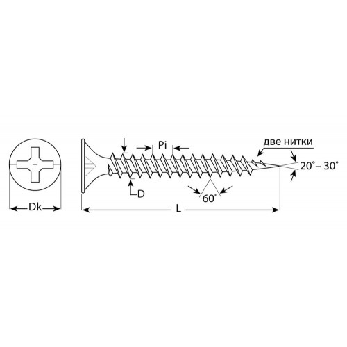 - Резьба с частым шагом разработана для крепления гипсокартона к металлическим профилям.