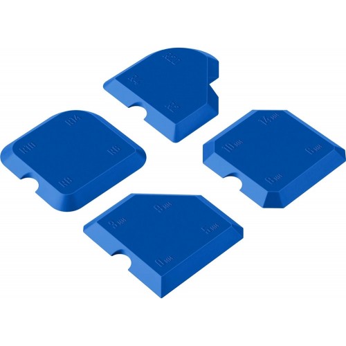 4 небольших силиконовых шпателя имеют по 4 различных размера и радиуса для придания формы шву герметика.