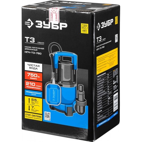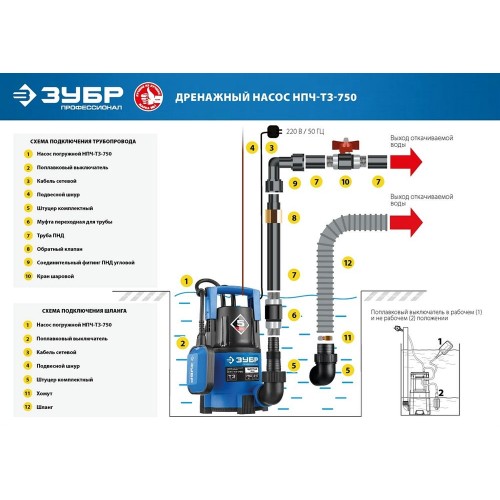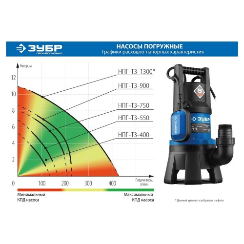 ЗУБР 750 Вт, дренажный насос с минимальным уровнем откачки, Профессионал (НПЧ-Т3-750)