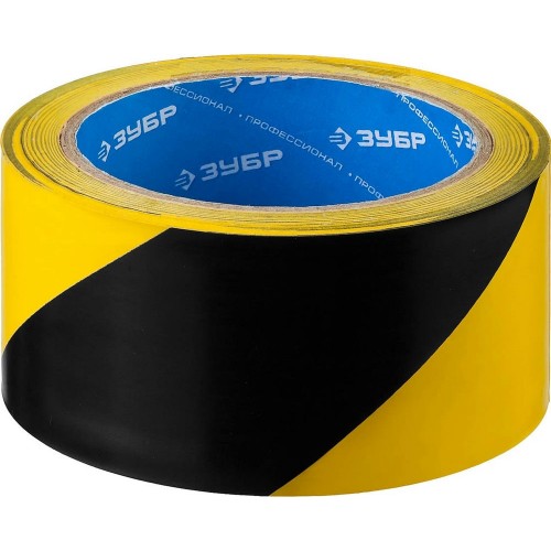 ЗУБР 50 мм х 25 м, желто-черная, разметочная клейкая лента (скотч) 12249-50-25 Профессионал