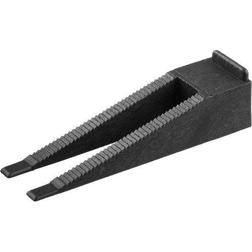 Клин для системы выранивания плитки ЗУБР 3387-250, предназначен для обеспчения плотного прилегание к поверхности обеих соседних плиток. Таким образом избегается возникновение разности высот между краями элементов кладки. Клинья легко удаляются после высыхания клея и могут быть использованы несколько раз. Предназначен для многократного использования, сделан из прочного пластика, он не деформируется при зажимании и надежно удерживает плитку в единой плоскости, обеспечивая отсутствие проседания во время высыхания плиточного клея. «Шаг зубьев» и форма клина позволяет работать с плиткой толщиной от 3 до 12 мм.