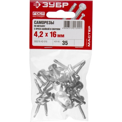 ЗУБР 16 х 4.2 мм, 35 шт., ПШМ-С саморезы с прессшайбой и сверлом для листового металла 300216-42-016 Мастер
