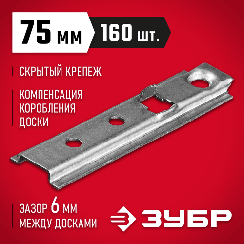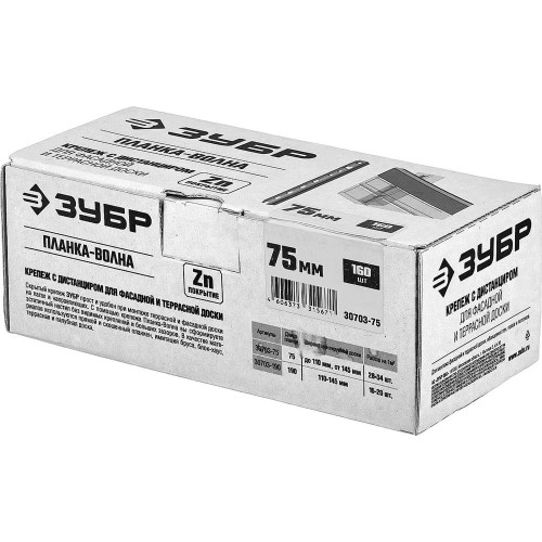 ЗУБР 160 шт, 75 мм, крепеж с дистанциром для фасадной и террасной доски Планка-Волна 30703-75