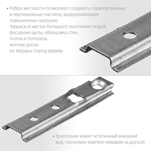 • Крепеж невидим за доской, что придает конструкции эстетичный внешний вид