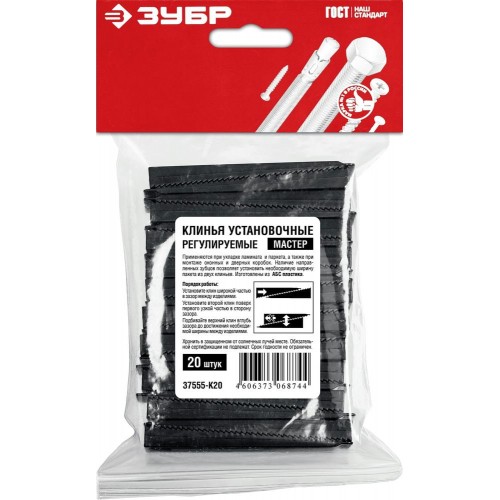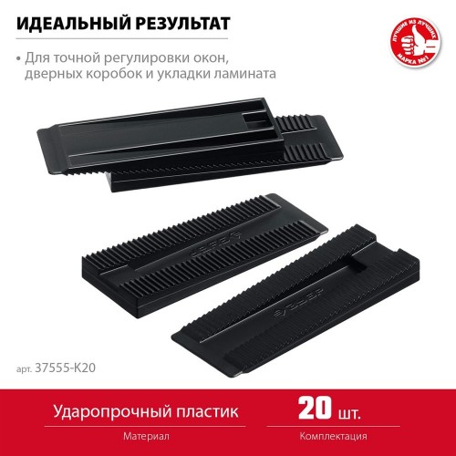 Клинья установочные регулировочные для окон, дверных коробок и ламината ЗУБР 37555-K20, предназначены для работ по установке окон, дверных коробок и ламината. Изготовлены из качественного материала. Выдерживает высокие нагрузки. Обладает высокой прочностью и долговечностью.