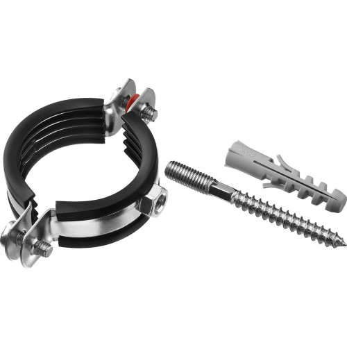 Стальные трубные хомуты способны выдерживать большие нагрузки и обеспечивают надежность крепления труб различного назначения к любым основаниям. Труба прочно фиксируется внутри хомута с помощью метрических винтов. Уплотнитель из высококачественной резины обеспечивает идеальную шумоизоляцию. Ширина ленты хомута составляет 20 мм.