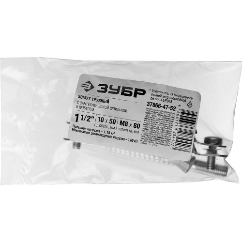 Хомут для труб металлический ЗУБР 37866-47-52, предназначен для крепления труб различного назначения. Хомуты усилены двумя ребрами жесткости и снабжены уплотнителем из высококачественной резины, что обеспечивает идеальную шумоизоляцию.
