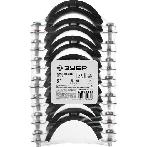 ЗУБР 7 шт., 2", оцинкованный, хомут трубный с гайкой 37850-59-65 Мастер
