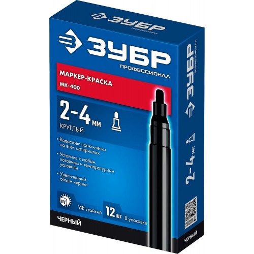 ЗУБР 2-4 мм, круглый, черный, маркер-краска, Профессионал (06325-2)