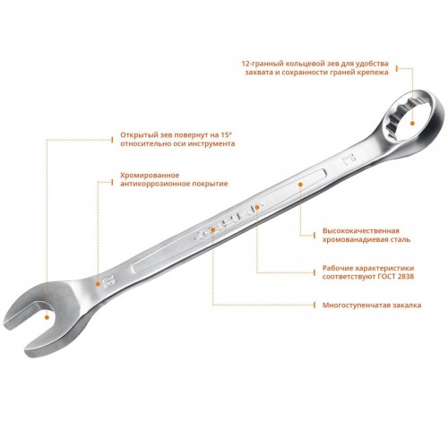 Ключ изготовлен из высококачественной хромованадиевой стали с многоступенчатой закалкой для увеличения ресурса ключа, а также обладает надежным хромированным покрытием для защиты от коррозии