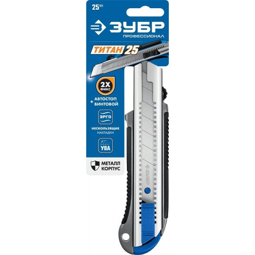 ЗУБР 25 мм, сегментированное лезвие, винтовой фиксатор, нож ТИТАН-25 09180 Профессионал
