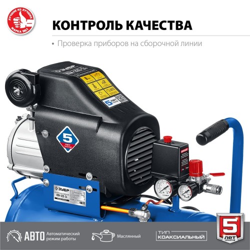 ЗУБР 2200 Вт, 320 л/мин, 24 л, поршневой, масляный, компрессор воздушный КПМ-320-24 Профессионал