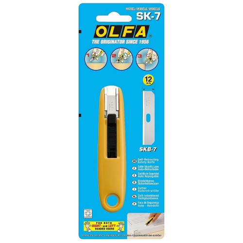 Нож безопасный с трапециевидным лезвием OLFA OL-SK-7, предназначен для резки бумаги, картона, упаковочной пленки. Прочный корпус из ABS-пластика с петлей для подвеса имеет утопленную направляющую из нержавеющей стали, для предотвращения случайного раскрытия в сумке или кармане.Нож OLFA SK-7 максимально безопасен в работе за счет мощной пружины, которая сразу убирает лезвие при потере контакта с поверхностью, сводя к минимуму возможность случайно порезаться. Замена режущего элемента производится быстро и без инструментов, что повышает производительность. Благодаря продуманной конструкции нож можно настроить для работы как правой, так и левой рукой, просто изменив направление лезвия.