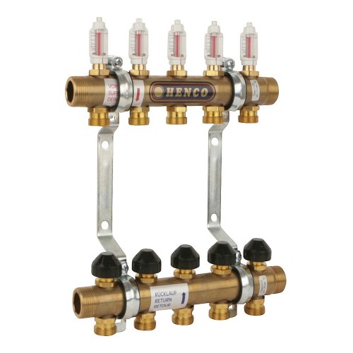 Группа коллекторная HENCO латунная с расходомером, 1"M - 7 x 3/4"EK