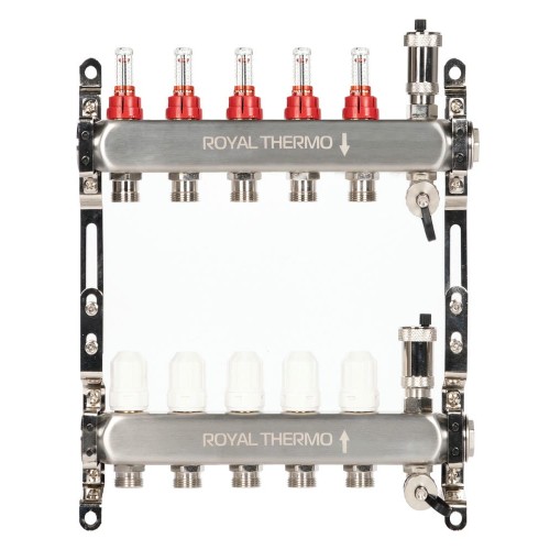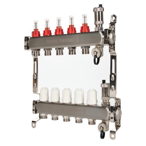 Коллектор Royal Thermo нерж. в сборе с расходомерами 1" ВР-3/4" НР с автомат. воздухоотвод-ми 5 вых.