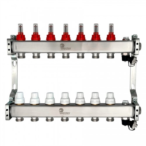 Коллектор Wester нерж. 1"-3/4 в сборе с расходомерами на 7 выходов, MUFS7134