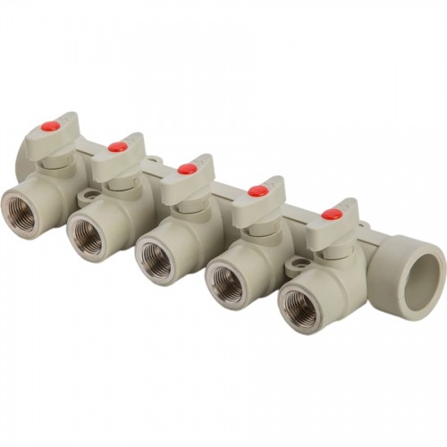 Коллектор с шаровыми кранами LAMMIN PPR представляет собой подающую трубу, на которой расположено три шаровых крана из полипропилена. Запирающие элементы шаровых кранов выполнены из нержавеющей стали. Коллектора для воды выполняют функцию подключения к одному источнику тепла нескольких распределительных трубопроводов.
