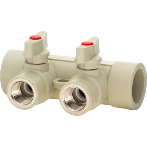 Коллектор с шаровыми кранами LAMMIN PPR представляет собой подающую трубу, на которой расположено три шаровых крана из полипропилена. Запирающие элементы шаровых кранов выполнены из нержавеющей стали. Коллектора для воды выполняют функцию подключения к одному источнику тепла нескольких распределительных трубопроводов.