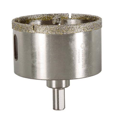 Коронка состоит из металлической основы, на которую нанесено специальное алмазное покрытие. Оно обеспечивает высокую прочность и износостойкость коронки, что позволяет ей долго сохранять свои качества.