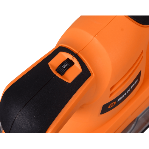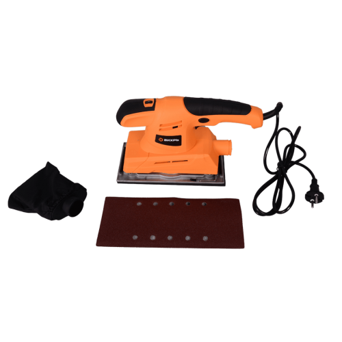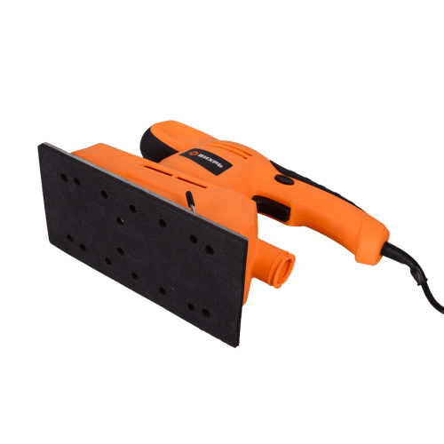 Вибрационная шлифовальная машина оснащена электрическим двигателем, который обеспечивает возвратно-поступательные движения подошвы по кольцевой орбите. Быстрая и удобная фиксация шлифовальной бумаги осуществляется за счет наличия прижимного механизма по краям основания. Шлифмашина легко справится с общей и тонкой обработкой деревянных, каменных, металлических, пластиковых поверхностей, благодаря возможности использовать шлифовальные листы с разной зернистостью и электронной регулировке частоты колебаний. Вес устройства составляет 2 кг. Для удобства удержания и эксплуатации корпус оснащен прочной ручкой с антискользящим покрытием. Клавиша включения расположена сбоку, колесо регулировки оборотов – в верхней части корпуса. Возможность фиксации выключателя исключает необходимость постоянного удерживания клавиши во время работы.