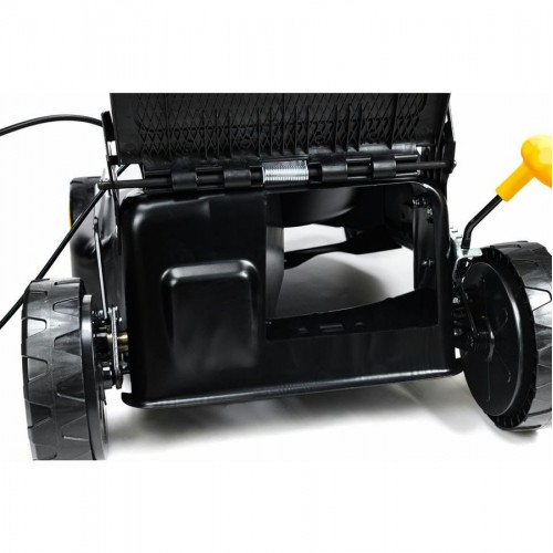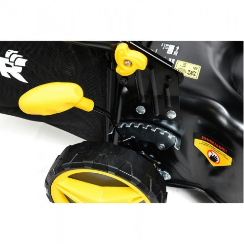 Самоходным агрегатом на колесах легко управлять, нужно всего лишь задавать направление движения, косилка движется самостоятельно. Модель оснащена тканевым травосборником объемом на 60 литров. Если необходимости в сборе травы нет, можно воспользоваться функциями мульчирования и бокового выброса. Это даст возможность подстригать газон и одновременно удобрять его.