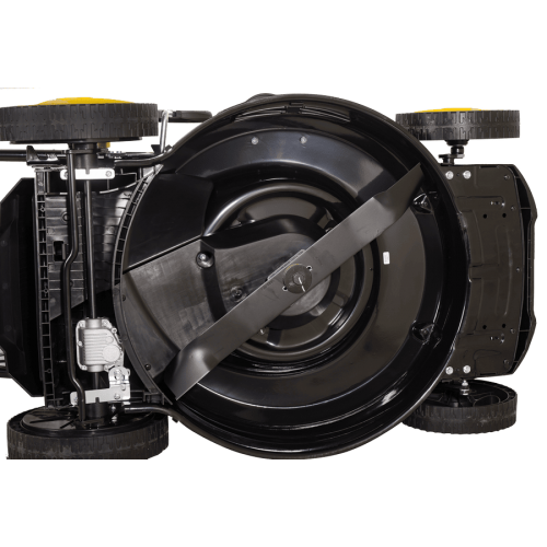 Высота среза имеет 7 уровней центральной регулировки. Это позволяет подобрать оптимальную высоту скашивания от 25 до 75 мм. Срез шириной 530 мм обеспечивает быструю обработку участка большой площади. Функция мульчирования позволяет измельчать скошенную траву. В качестве топлива используется бензин АИ-92. Вместительный топливный бак объемом 1,2 л обеспечивает длительность непрерывной работы.