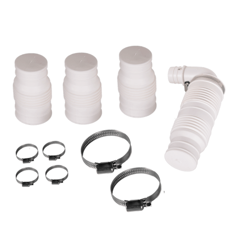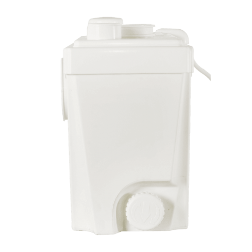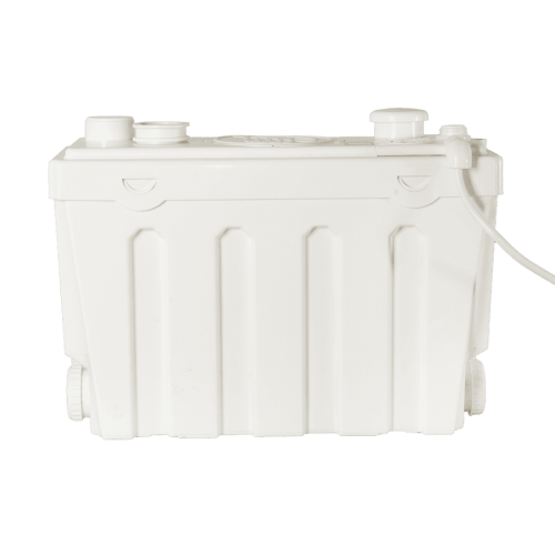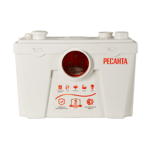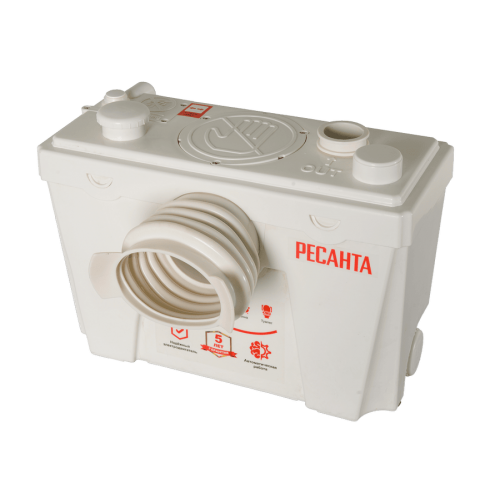 На пластиковом корпусе насоса расположены отверстия для 3-х выходных муфт для отвода воды из умывальника, душа, стиральной машины. В комплекте имеется дополнительная резиновая муфта для подключения к унитазу. Обратный клапан предотвращает попадание жидкости в насосную установку, исключает возникновение неприятного запаха. Автоматический режим работы предусматривает самостоятельный запуск устройства при его наполнении сточными водами. Снижение уровня жидкости до минимального порога приводит к отключению.