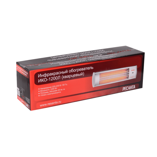 Модель Ресанта ИКО-1200Л относится к категории ламповых нагревательных приборов. Мощность этого инфракрасного лампового обогревателя кварцевого типа составляет 1.2 кВт. Его можно применять как в качестве основного источника тепла помещений площадью до 20 м², так и дополнительного. Кронштейны могут поворачиваться на 60°. Питание осуществляется от бытовой электросети 220 В, 50 Гц. Вес прибора – 1.4 кг.