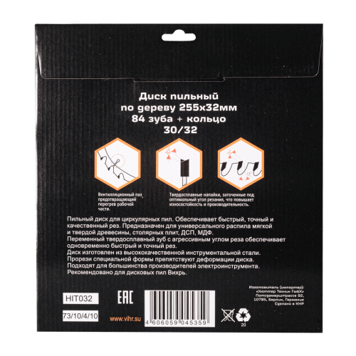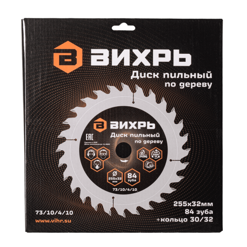 Диск пильный по дереву ВИХРЬ 255х32 мм 84 зуба