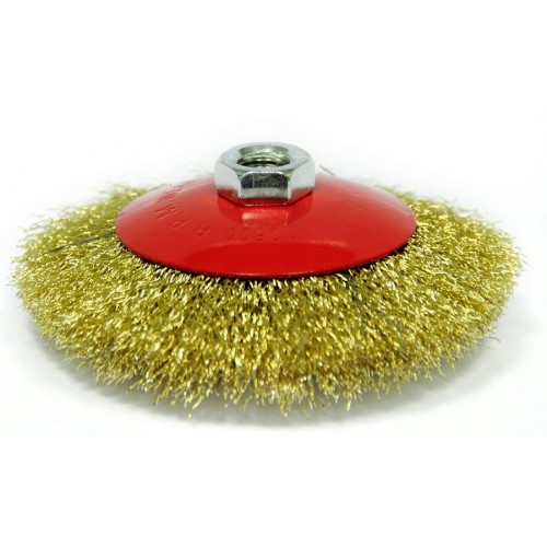 Щетка для УШМ, 125 мм, М14, 'тарелка', латунированная витая проволока 0,3 мм