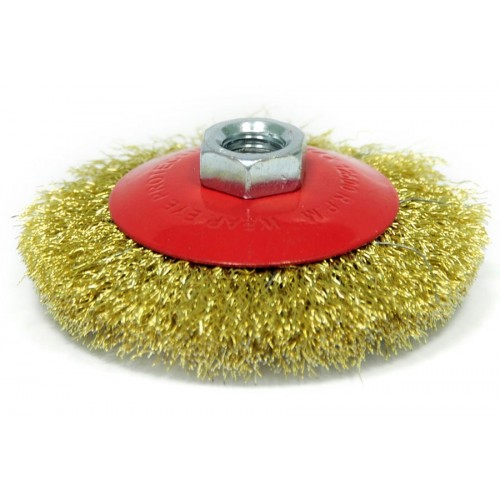 Щетка для УШМ, 100 мм, М14, 'тарелка', латунированная витая проволока 0,3 мм