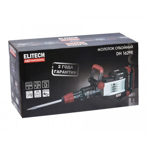 Электрический отбойный молоток ELITECH HD DH 1629E (E2205.023.01) мощностью 1650 Вт и энергией удара 5-29 Дж предназначен для дробления и раскалывания твердых материалов (бетон, дорожные покрытия, кирпич, штукатурка, природный и искусственный камень), штробления пазов и каналов, проделывания проемов в стенах из кирпича и бетона и других строительно-монтажных работ с использованием соответствующей оснастки.