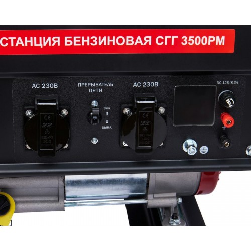 Электростанция СГГ 3500РМ предназначена для работы в качестве автономного источника электроэнергии переменного однофазного тока напряжением 230 В и максимальной мощностью 3 кВт для питания электроинструментов, строительного оборудования (в том числе домашнего и офисного), бытовых приборов. В качестве топлива используется неэтилированный бензин АИ-92 и сжиженный или магистральный газ.