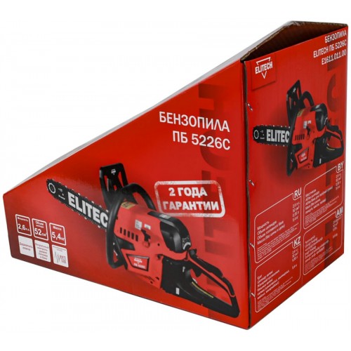Бензиновая цепная пила Elitech ПБ 5226С мощностью 2,6 л.с. и с шиной длиной 38 см, предназначена для валки деревьев, обрезки веток и сучьев, раскряжевки и заготовки дров. Может применяться для плотницких работ, расчистки местности от кустарников и молодой поросли деревьев, и других хозяйственных работ, связанных с пилением древесины.