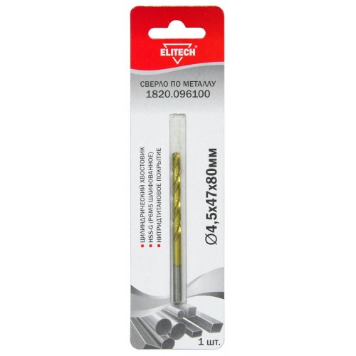 Elitech Сверло 4.5х80HSS-G+TiN 1шт 1820.096100