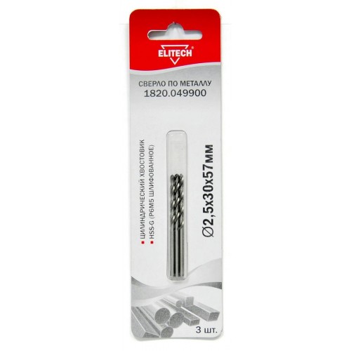 • Elitech Сверло 2.5х57 HSS-G 3шт 1820.049900