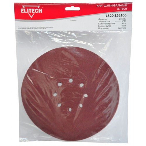 Elitech Круг шлифовальный 225мм Р80 5шт 1820.126100