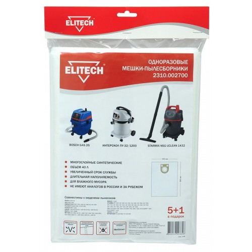 Одноразовые синтетические многослойные мешки-пылесборники 5+1 шт. для пылесосов BOSCH GAZ 25 Увеличенный объем