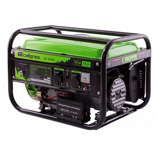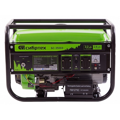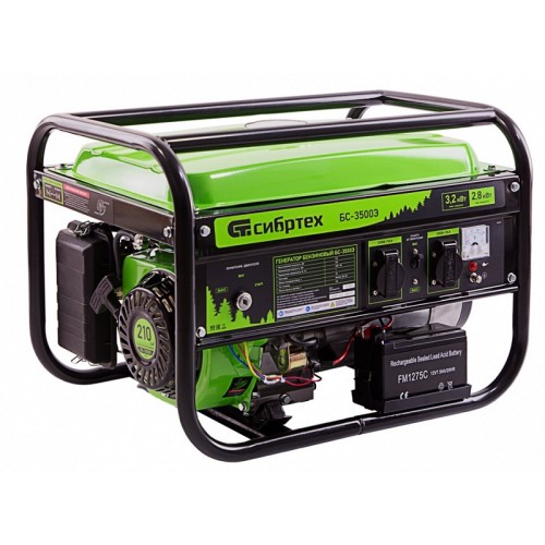 Генератор бензиновый БС-3500Э, 3.2 кВт, 230В, 4-х тактный, 15 л, электростартер СИБРТЕХ 94538