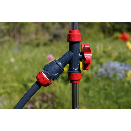 Раздвижной телескопический садовый душ на треноге с запорным вентилем, регулируется по высоте в пределах от 152 до 207 см.