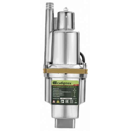 Вибрационный насос СВН300-25, верхний забор, 300 Вт, напор 75 м, 1200 л/ч, кабель 25 м СИБРТЕХ 99303