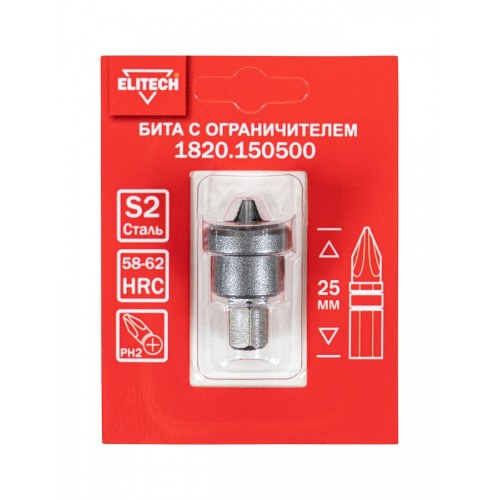 Elitech Бита с ограничителем для ГКЛ PH2 25мм 1820.150500