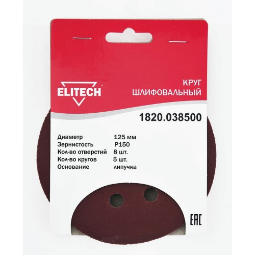 Elitech Круг шлифовальный 125мм Р150 5шт 1820.038500